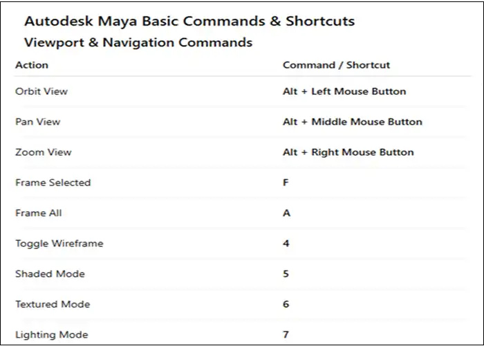Autodesk Maya command list for beginners and professionals